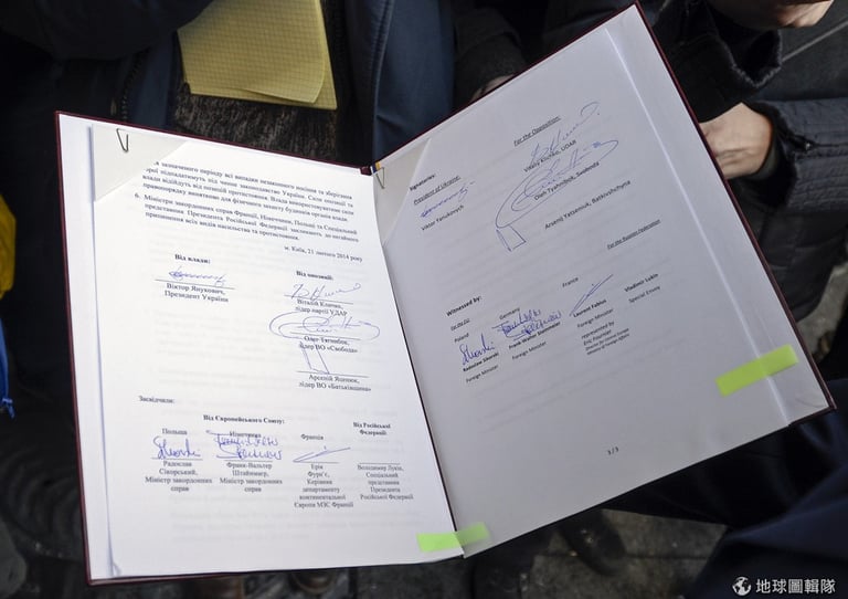 引起國際社會關注的烏克蘭政治危機終於出現突破性進展,烏克蘭總統亞努柯維奇、以及反政府領導們正式簽下了一份協議書,他們希望能藉此平息近日來已經演變為血腥衝突的國家危機。