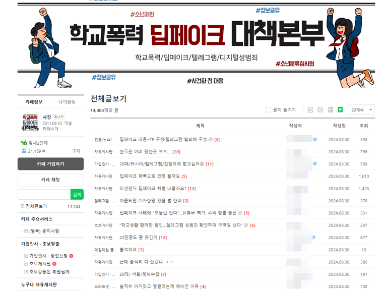 近日在Naver的카페論壇也出現能讓加害者分享應對調查的內容,使用者可在該校園暴力深偽對策總部論壇討論、分享個人經驗:「找律師進行了付費諮詢,獲得很多實用建議」、「就只是洩露個人資料、製作影片、威脅而已,才15歲,有什麼大問題?」、「是用照片機器人做的,沒有收錢,只是朋友之間分享,懲罰程度會多嚴重?」等,與Deepfake、Telegram相關的詢問也接踵而來,甚至還嘲笑警方與調查機構,表現出不會被捕的自信。