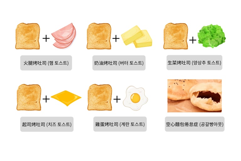 生菜烤吐司(양상추 토스트):表示身體衰弱軟趴趴,感覺即將失去能量。
