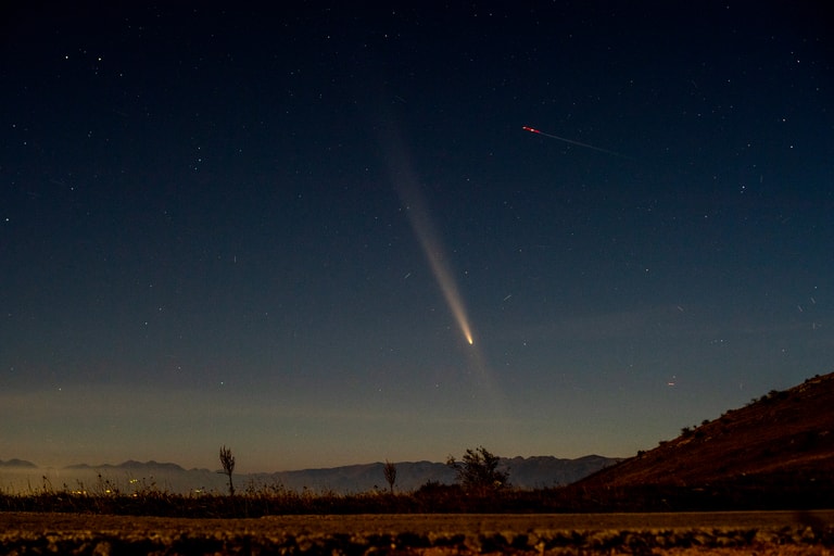 The comet images are coming from all around the world !! 🤩 This spectacular image taken by @MiguelClaroNFT . The image was captured from a field within the Dark Sky Alqueva territory in Portugal 🇵🇹 According to Miguel, the moonlight shone brightly, effectively illuminating the… pic.twitter.com/1KiAdoNks8
