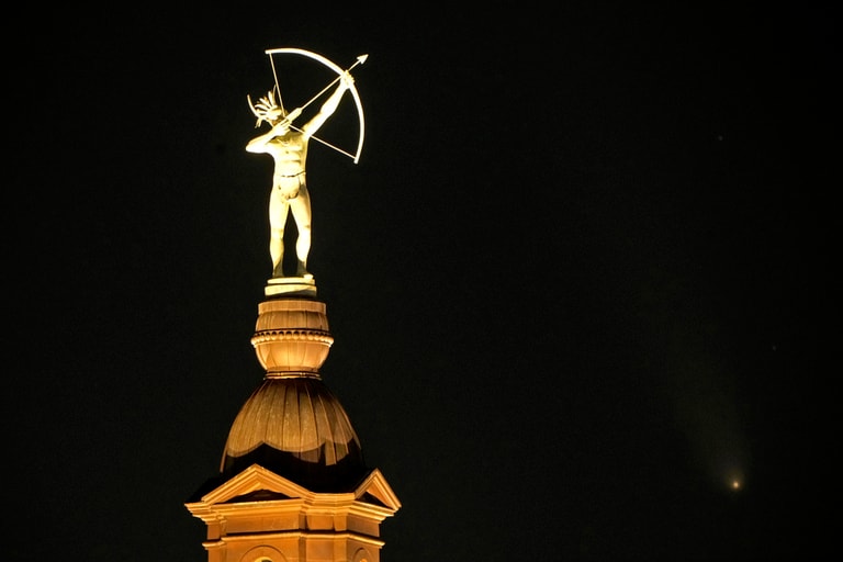 根據《EarthSky》報導,在太陽下山後可以試著眺望西方天空,就能捕捉到這個千載難逢的景象。在夜空中,紫金山-阿特拉斯彗星就像一道明亮的火球,拖著長長的尾巴。