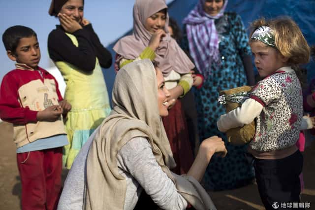 照片中是擔任聯合國難民署(UNHCR)特使的女星安潔莉娜裘莉(Angelina Jolie),她再度訪視敘利亞難民的境況,24號這天可以見到她現身在黎巴嫩貝卡谷地(Bekaa Valley)的難民營區中