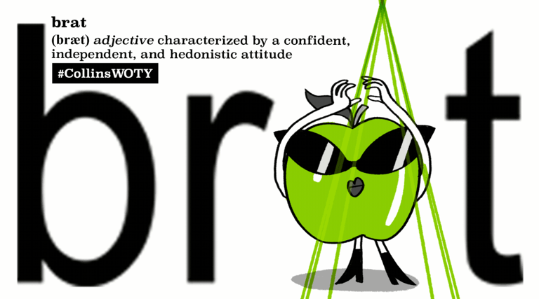 Brat一詞原是指「小子」、「乳臭未乾的小鬼」、「淘氣鬼」。2024年6月,英國歌手酷娃恰莉(Charli XCX)推出新專輯《brat》,形容Brat是「有點邋遢、喜歡開趴,而且有時可能會說一些蠢話的女生,她充滿自信,即使偶爾感到崩潰,仍可以用狂歡來調適」。自此,Brat一詞開始被詮釋為自信、叛逆、大膽而無忌的態度。