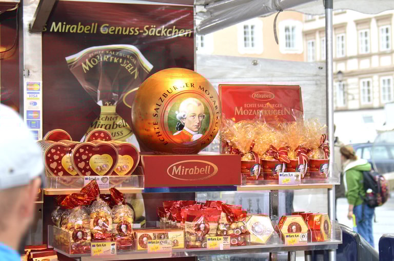 自1948年開始生產以來,位於格勒迪希(Grödig)的薩爾斯堡巧克力工廠已生產了約50億顆,名為「真薩爾斯堡莫札特巧克力」(Real Salzburg Mozartkugeln)的莫札特巧克力,成為觀光客來到奧地利,必買的伴手禮。