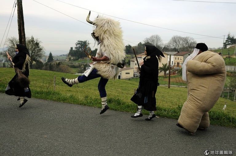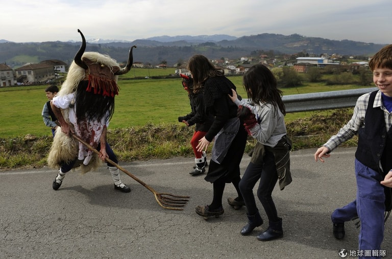 為什麼南歐一帶會有這樣的面具儀式?在介紹西班牙傳統慶典的網站中,就介紹到其實這種習俗最早可以回溯到基督教出現前的古羅馬時期,當時信仰異教的人們會用這樣換穿面具的方式,驅趕邪靈厄運,例如有時村民會用手上嚇人的三叉戟敲敲男人3下表示趕跑惡魔。另外,這樣的儀式在某些地區也認為可以象徵帶來豐收好運。