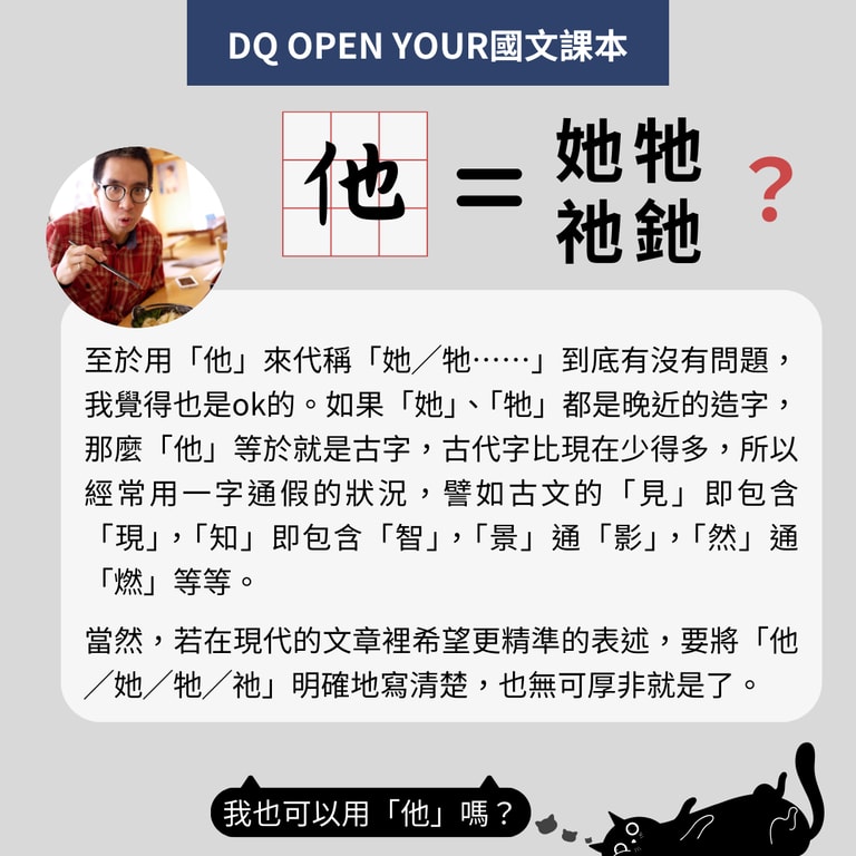 【DQ Open Your 國文課本】他、她一定要分清楚嗎?國文老師怎麼說?