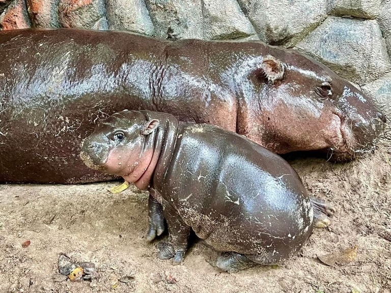 泰國綠山野生動物園(Khao Kheow Open Zoo)公開兩個月大的侏儒河馬寶寶「彈跳豬」(Moo-Deng),因呆萌外表和活潑性格在社群上迅速爆紅,甚至掀起「河馬腮紅妝容」熱潮。