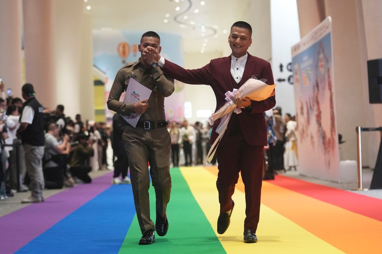 而在這值得慶祝的這天,數百對 LGBTQ+伴侶在泰國各地登記結婚,並舉辦盛大的慶祝活動。曼谷市長查察西提潘(Chatchat Sitthiphan)形容這天是「彩虹飄揚的日子」。泰國前總理賽塔塔維辛(Srettha Thavisin)則在社群媒體公開祝賀,