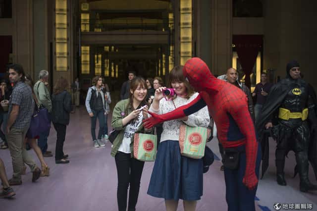 首圖故事:蜘蛛人歡迎旅客拍照..