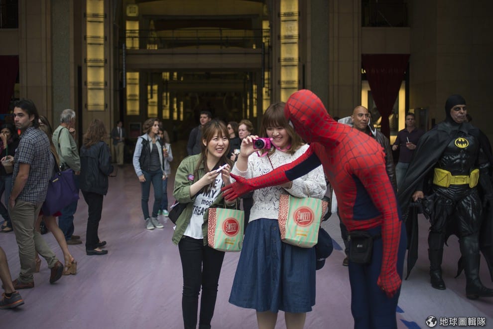 穿成蜘蛛人的員工歡迎遊客,並且介紹即將來臨的第86屆奧斯卡頒獎典禮。本屆奧斯卡將會在3月2日時登場。