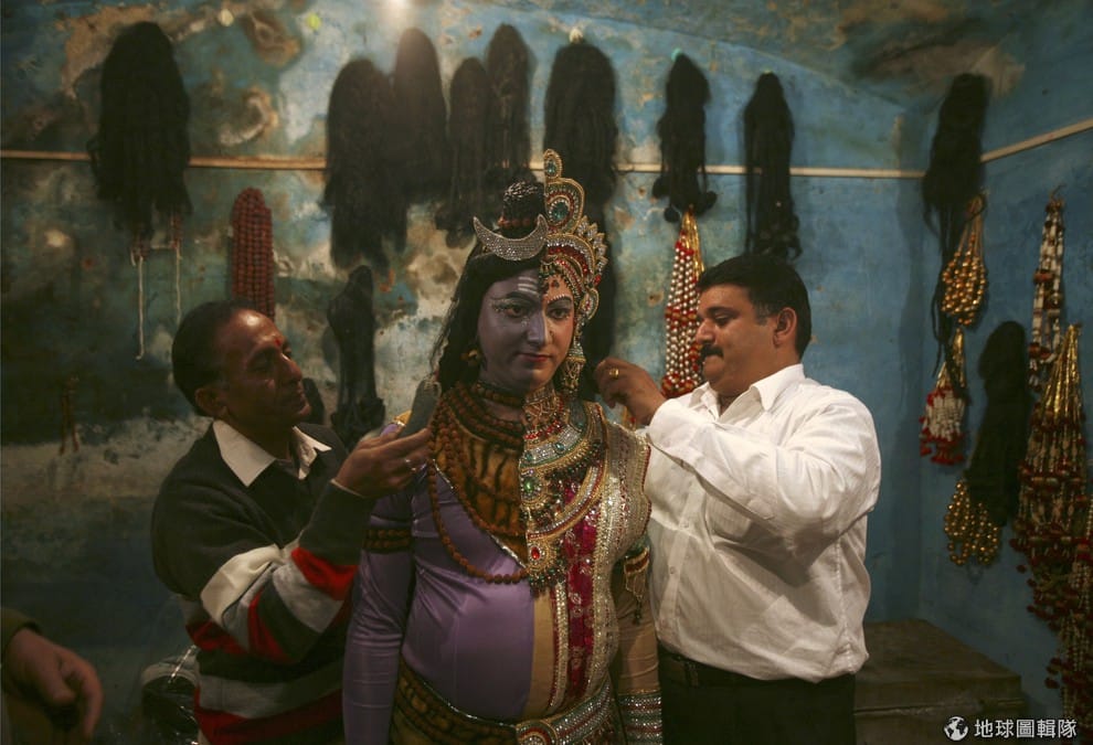 照片中的男子忙著將中央的表演者裝扮成印度神祇濕婆(Lord Shiva)、以及其妻子帕爾瓦蒂(Parvati),26號這天,喀什米爾地區的民眾忙著迎接濕婆神節(Mahashivratri),這個節日也是要慶祝濕婆與妻子結婚周年