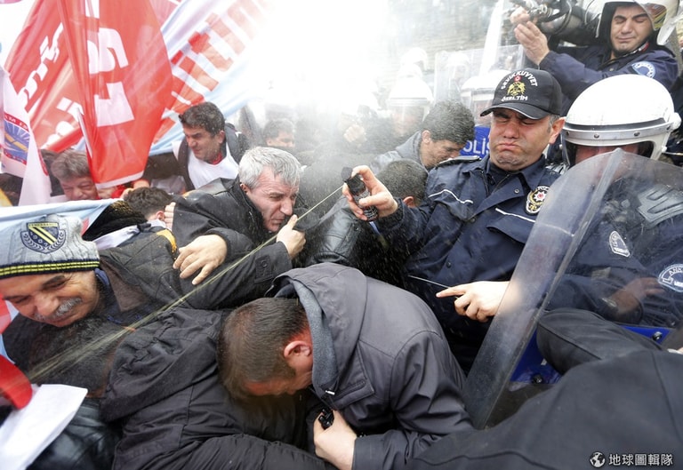 鎮暴警察朝示威者噴出催淚瓦斯,日前24號時,土耳其總理埃爾多安(Tayyip Erdogan)遭爆藏有大筆現金,在一份錄音檔中,就有他告訴兒子如何在貪污調查期間,處置多筆可疑現金。埃爾多安本人則回應這份錄音是造假