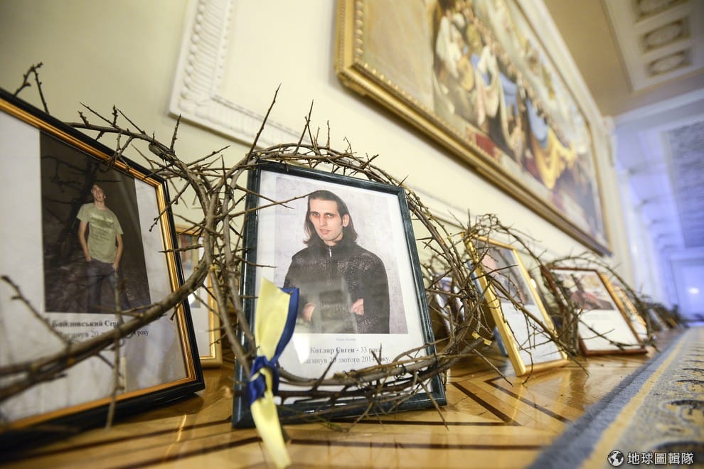 在示威活動中喪生的人們,他們的肖像被放在國會大樓中的臨時紀念堂。