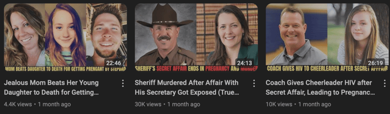「這些名為真實犯罪的影片,全都是我用ChatGPT和AI生成圖像製作而成的虛構故事。」