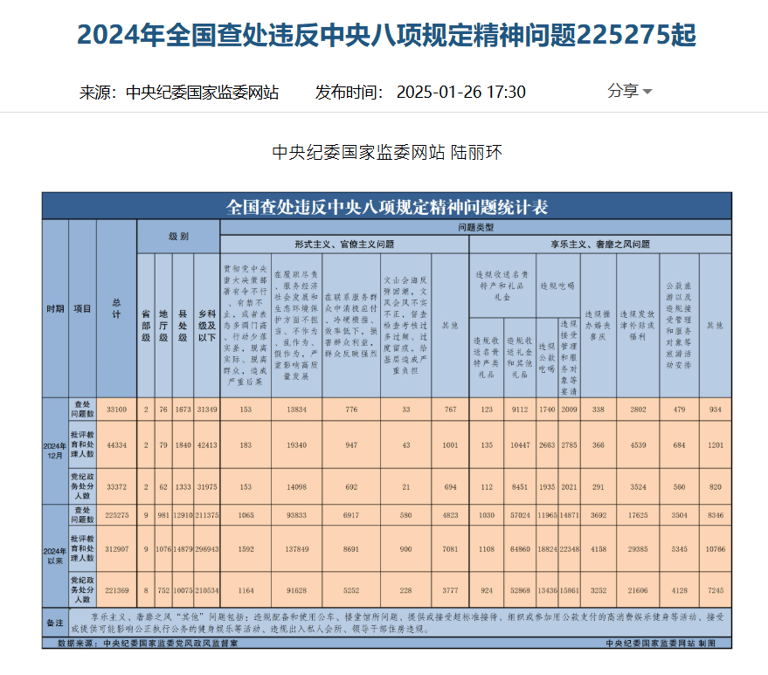 面對地方公務員的「消極怠工」,中央政府一方面加強問責,中國官方數據顯示,2024年中紀委(中共內部的反貪機構)因「不負責任」、「不作為」或「假裝工作」等罪名,懲處了13.8萬名公務員,這一數字是前一年的兩倍。相比之下,第二常見的違紀行為——「違規送禮或收禮」的受處分人數僅為前者的一半。