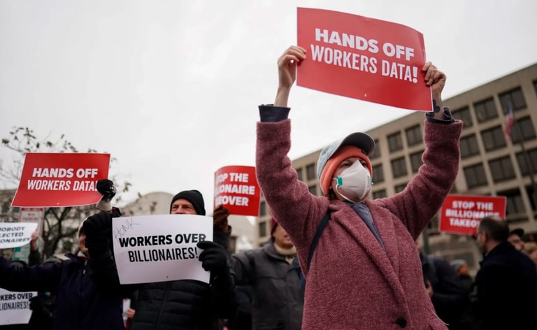川普上任首日簽署行政命令,創設體制外的「政府效率部」(DOGE),讓世界首富馬斯克帶領一群年輕、沒有政府經驗的科技人,在未經安全背景審查下「接管」各聯邦機構,取代許多高階公務員的職務、取得財政部等單位存取內部資料的權限、強迫公務員放無薪假、限制他們使用辦公室電腦,甚至發出自願申請離退的電子郵件。