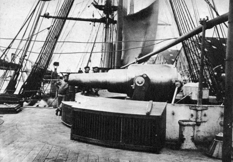 自15世紀地理大發現開始,歐洲各國開始在世界各大海洋地區發展商船隊,也逐漸興起資本和殖民主義;「海軍」做為海上的武裝力量,國家軍事實力的延伸,自然也逐漸受到重視。特別是做為海島國家的英國,在航行的風帆船上裝備各種火炮,成為後來17世紀逐漸發展成熟的「風帆戰列艦」;畫作中的「無畏號」便是這個時代孕育而生的產物,它是裝備98門船炮,左右船舷各有三層火炮甲板,火力強大。
