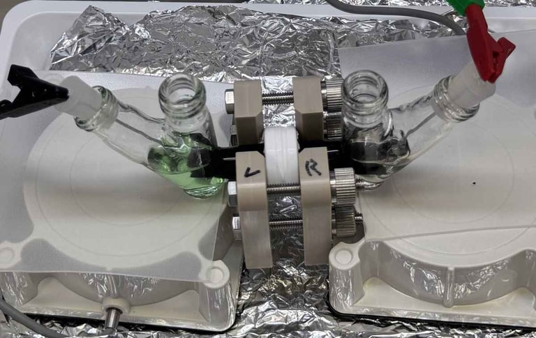 目前,團隊亦著手開發以氧化還原液流電池(Redox Flow Battery)為基礎的高容量儲能系統,搭配具電解液循環功能的系統設計,以促進該技術的實用化。然而,考量鈾具放射性特性,未來這類電池的實際部署仍須限制於輻射管制環境,例如核電廠設施等。