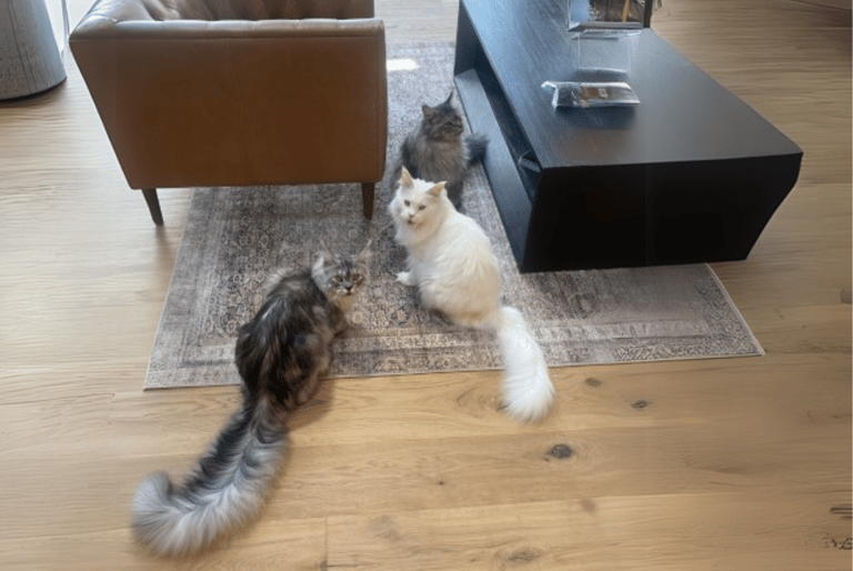 為什麼帕斯利的尾巴這麼長呢?原因在於緬因貓是家貓中體型最大的品種,擁有適應寒冷天氣的特性,因此牠們天生擁有濃密的毛,並以蓬鬆的大尾巴而聞名。這不僅可以當作座墊,還能用來保暖。除此之外,緬因貓的腳掌也有豐厚的掌毛(Well-tufted),有助於牠們在積雪上行走,甚至有些緬因貓的腳趾頭多達六個。