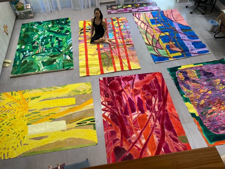 在劉昕穎的畫作前,可以感受到孤獨也有歡樂的瞬間,以色彩與光影的運用,探討人與自然、社會、自我的關係,喚醒觀眾對這些問題的關注。
