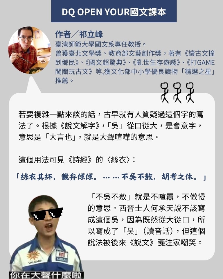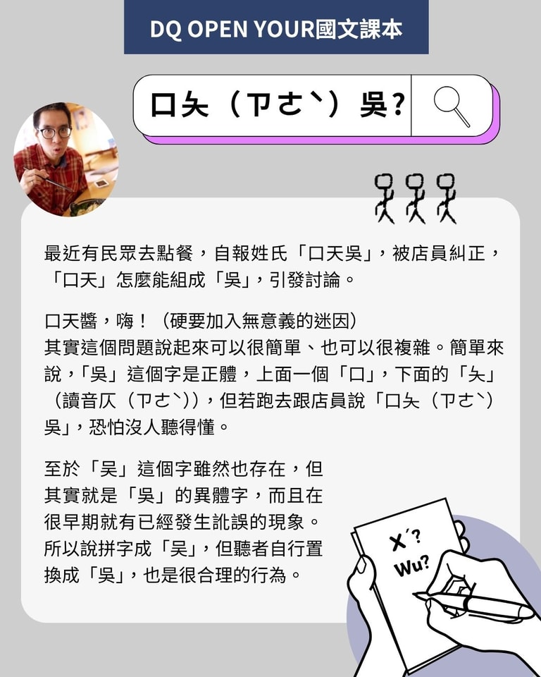 【DQ Open Your國文課本】「口天吳」、「口夨吳」還是「口大吳」?從點餐風波談「吳」的多重面貌