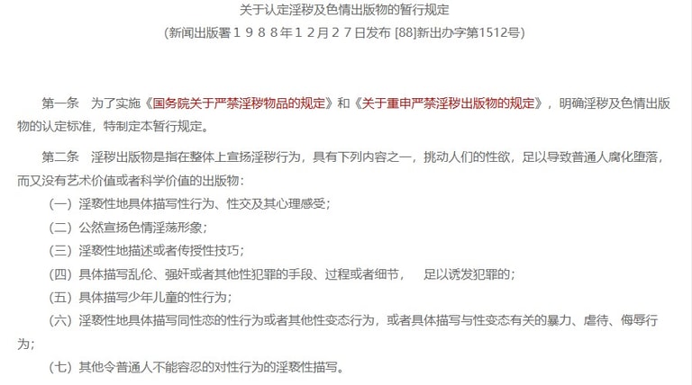 而這些案件也引發了人們對法律中「淫穢」定義模糊的批評。根據1988年中國發布的《關於認定淫穢及色情出版物的暫行規定》,「淫穢」被定義為「在整體上宣揚淫穢行為,具有下列內容之一,挑動人們的性慾,足以導致普通人腐化墮落,而又沒有藝術價值或者科學價值的出版物。」