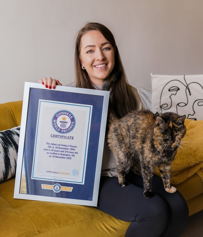 將Flossie接回家後,這隻老貓還給了新主人一個大驚喜——獲得金氏世界紀錄認證。