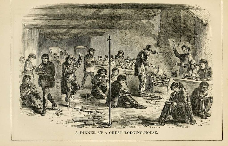 收入較優渥的工人,一週或許能賺到約一鎊又五先令,尤其若是穩定受雇者,便能每日享用肉類,甚至在餐點中加些培根與起司。但當時局嚴峻、景氣低迷時——例如冬季的建築業淡季——肉類便可能從餐桌上消失,取而代之的是用來填飽肚子的麵包與馬鈴薯,再佐以些許奶油,或者是肉販分開販售的廉價動物油脂。