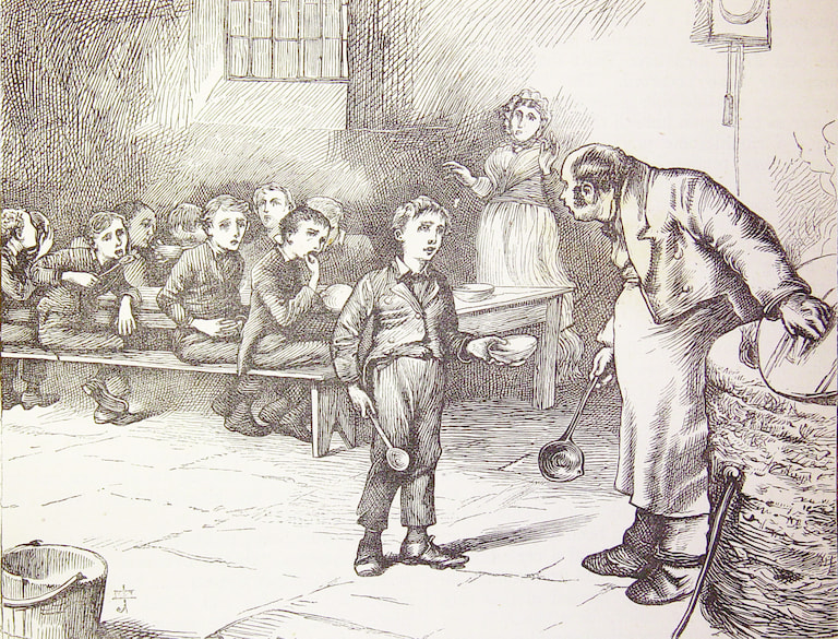 極度貧困的人幾乎只能依靠馬鈴薯維生;稍微富裕一些的人,也僅能靠麵包、馬鈴薯與稀粥來填飽飢腸轆轆的肚子。稀粥是監獄與濟貧院的主要食物來源,《孤雛淚》中那位孩子因飢餓難耐,鼓起勇氣請求「再來一碗」的橋段,便廣為人知。