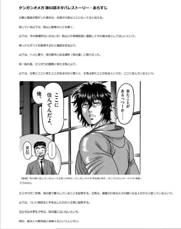 劇透網站上會摘錄該作品的文字內容,例如: