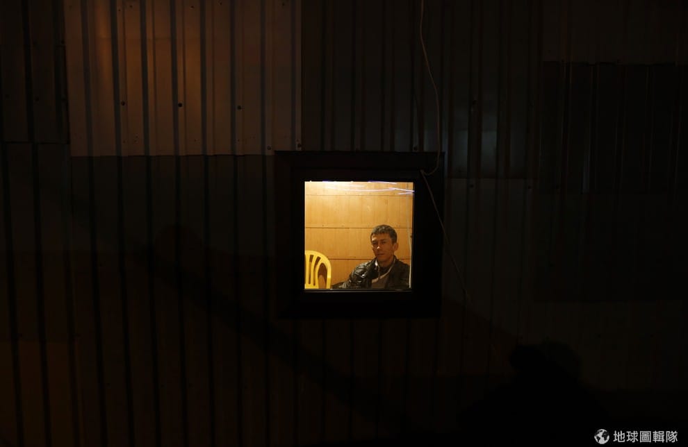 克里米亞的賽凡堡港當地,一位韃靼人坐在臨時崗哨中看守社區大門,防止親俄民眾的進入。日前9號時,克里米亞當地出現一群身穿軍服、未有明確標註所屬軍營的人士封鎖了當地機場的軍營。