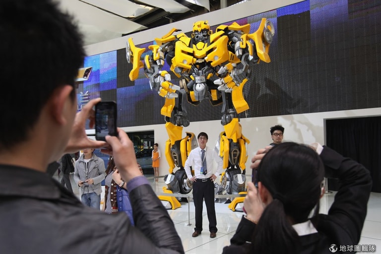 上海汽車大展也請到了大黃蜂登場!汽車業務員直接放下手邊工作,也一定要拍上幾張啊!圖片來源:Feng Li/Getty Images