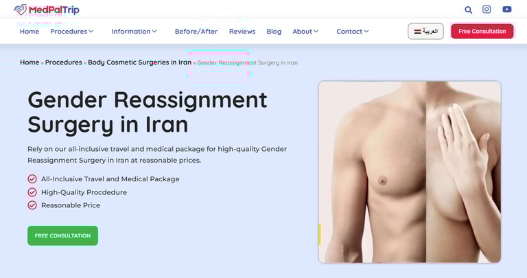 遊客可以在伊朗接受的手術類型多元,例如常見的整形、植髮、隆乳、抽脂,以及生育治療、幹細胞治療和器官移植等。其中,也包含了陰道、陰莖成形等性別重置手術。