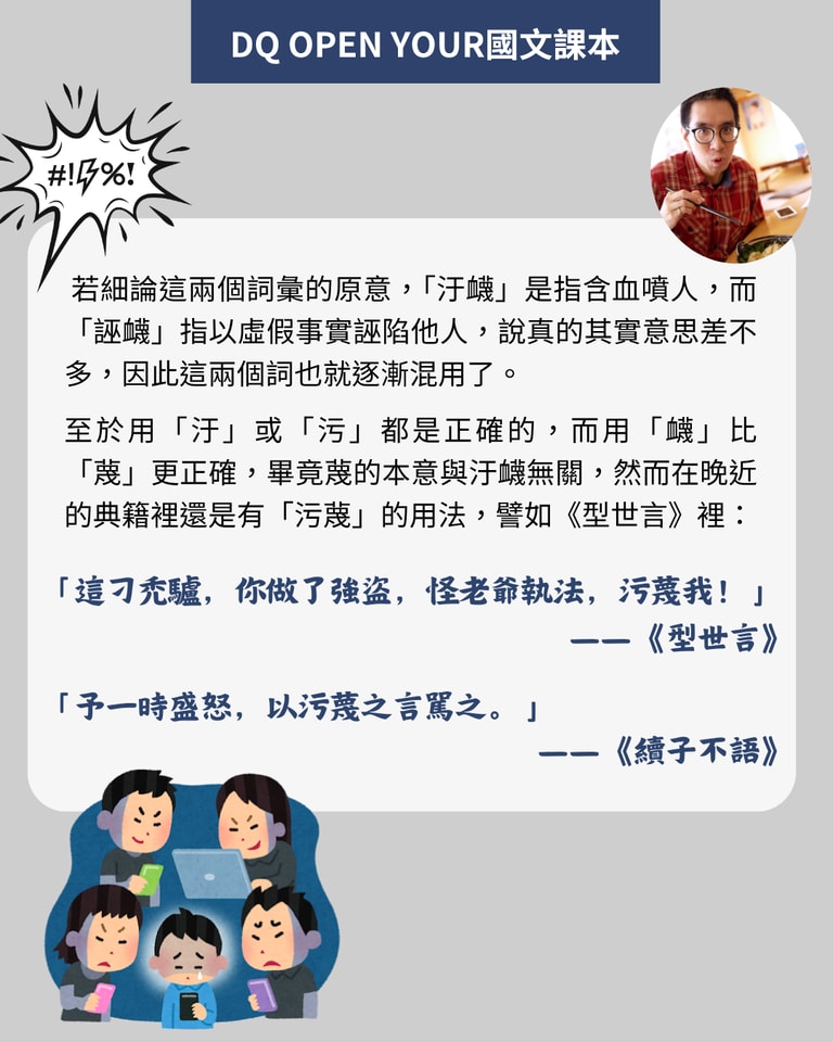 【DQ Open Your 國文課本】污衊、汙衊、誣衊、誣篾?ㄨ ㄇㄧㄝˋ這個詞,到底怎麼分?