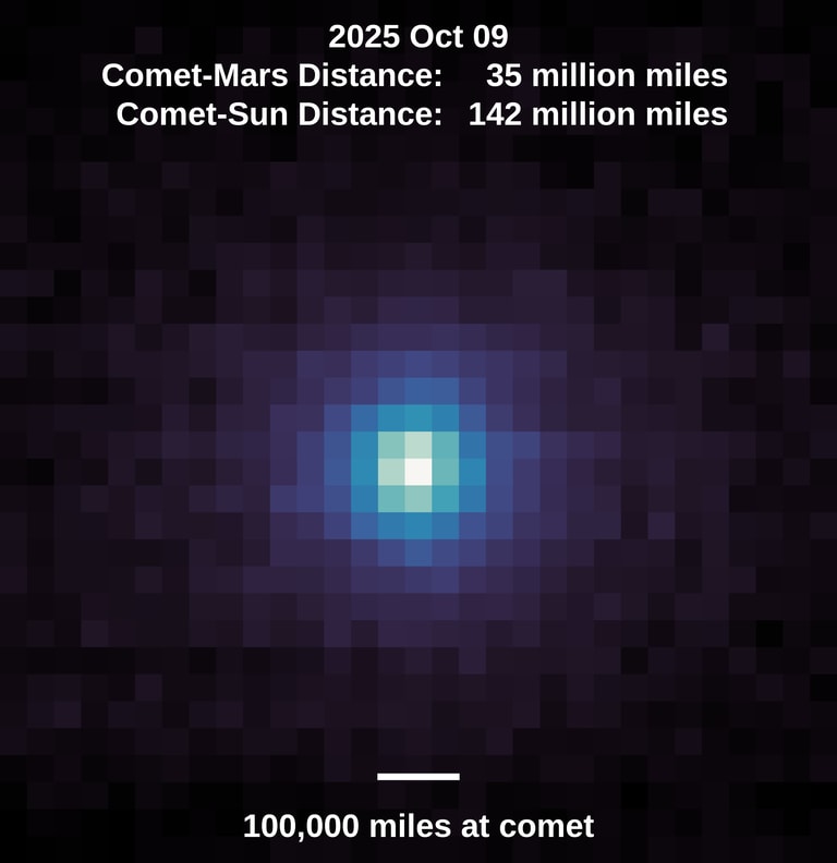 當3I/ATLAS掠過火星軌道、距離僅3,000萬公里時,火星便成為最佳觀測平台。NASA的三項火星任務都成功拍攝彗星的照片。