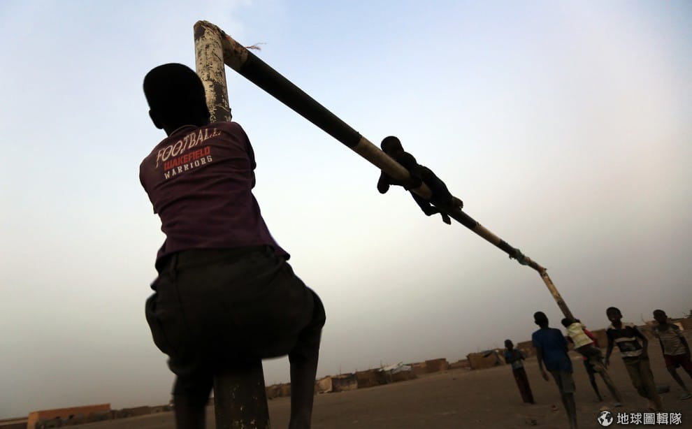 來自南蘇丹的難民孩子們正在玩足球,近期英國國會與英國足球聯賽(Premier League)合作,希望能用足球活動讓難民孩子們的生活情況有所改善。
