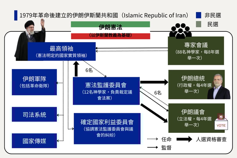 同時,伊朗政治長期存在貪腐和管理不善的問題,民選政府也曾有意推動經濟開放或擴大法治以改變現狀,但皆未成功,反而讓聽命於最高領袖的武裝部隊「伊斯蘭革命衛隊」(IRGC)進一步擴大權力,持續干預經濟。