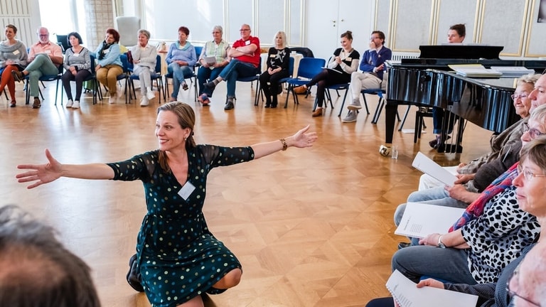 「我準備了極其豐富且多元的曲目,例如荷蘭經典民謠〈我的爺爺(M'n opa)〉。透過跟唱讓他們重新找回自信,我常鼓勵他們,就算只唱『啦啦啦』或隨口哼唱也沒關係。而他們通常很快就能融入其中。」