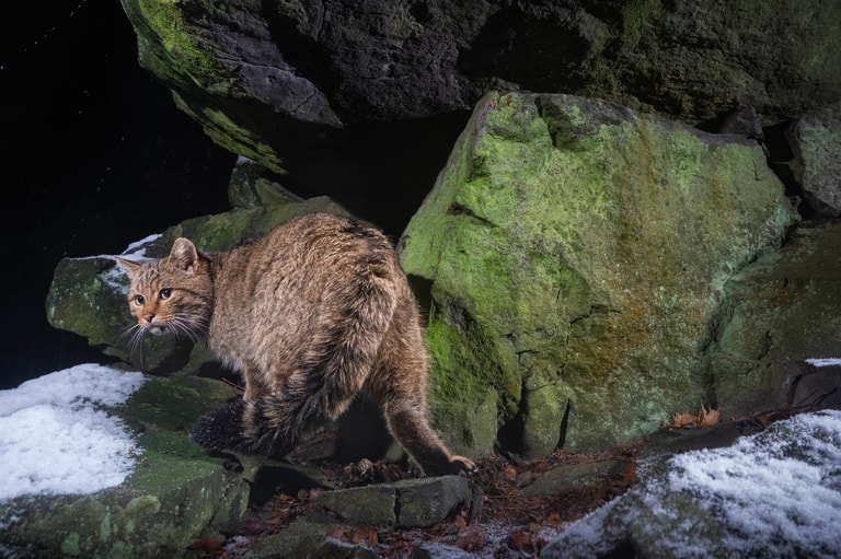 2020年,為了協助歐洲野貓的研究,野生動物攝影師切赫(Vladimír Čech Jr)進入到杜波夫山脈,在層層積雪和崎嶇地形中架設相機,更結合了感應器和遙控裝置,就是為了拍下歐洲野貓到訪的那一瞬間。他形容這就像是「在森林中央搭建一座隱形攝影棚」,和看不見的身影周旋。在他的不懈努力下,終於成功捕捉到捷克境內首批高清的歐洲野貓畫面。