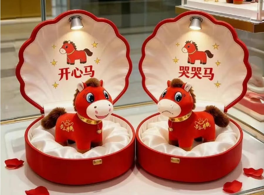 這隻小馬出廠據說是一個意外,一家義烏小玩具生產商的一名工廠工人,不小心把馬的嘴巴縫反了,導致本來是笑臉,變成苦臉,沒想到苦臉版本的小馬在中國爆紅,被稱為「哭泣的馬」,反應人民感受到的社會壓力很大。