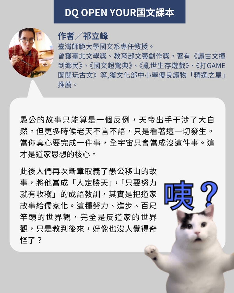 為此,DQ特別邀請臺灣師範大學國文系祁立峰教授,為我們詳細解析「愚公移山」這個成語。