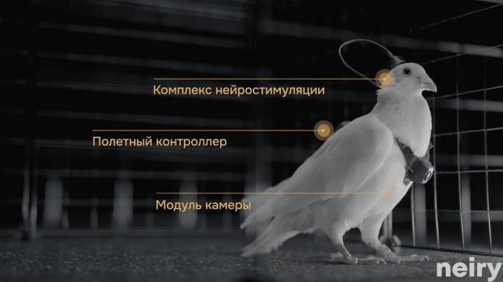 俄羅斯新創Neiry宣稱成功將電子裝置植入鴿子大腦,將之改造成生物無人機。Neiry聲明植入物只是輕微刺激鴿子大腦,引導牠們選擇特定飛行路徑,類似傳統無人機預設飛行任務。鴿子試飛時攜帶小型控制器、太陽能電池板和攝影機,幫助評估所謂「生物無人機」收集資料的有效性。