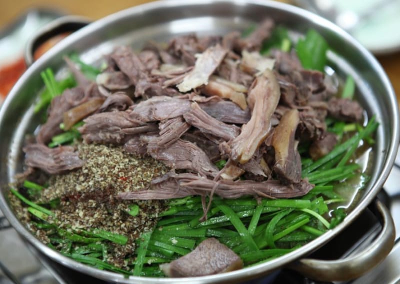 不過,在佛教盛行的高麗時代,受到禁止殺生的教義影響,包含狗肉在內的肉食文化曾一度衰退,直到以儒教為核心的朝鮮時代,在肉舖裡才又開始買賣狗肉,並成為時令習俗。