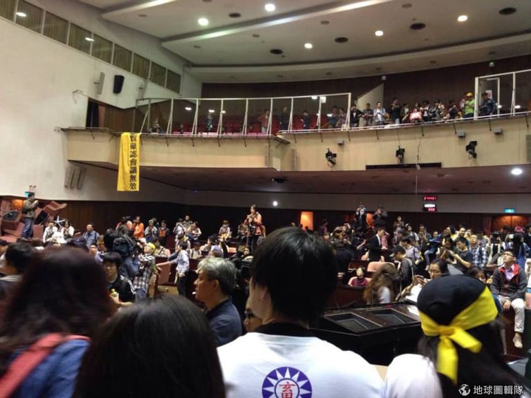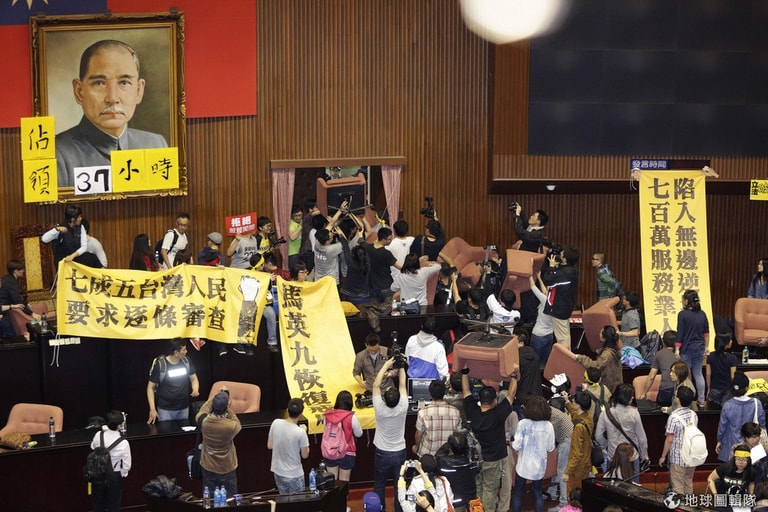 數百名學生與示威者不滿台灣與中國簽訂的貿易協定,在18號晚間佔據了台灣的立法院,並和驅散他們的警方發生衝突,在BBC報導中談到,這些示威者表示台灣與中國簽訂的服務貿易協定,會重創台灣經濟,同時讓台灣落入中國政府的掌控。