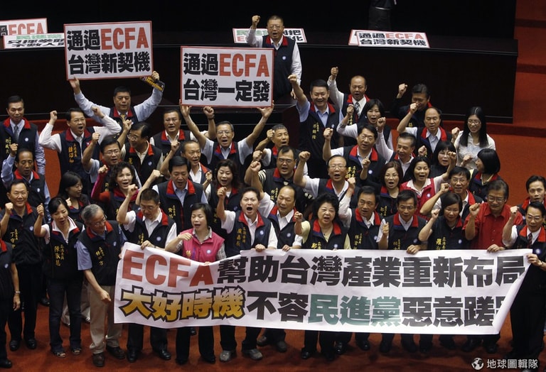 2013年6月,台灣和中國簽署了服務貿易協定,但因為爭議過大遲遲未得到立委通過。這項協定的目的是讓兩岸在彼此的服務業市場上有更自由的投資方式。