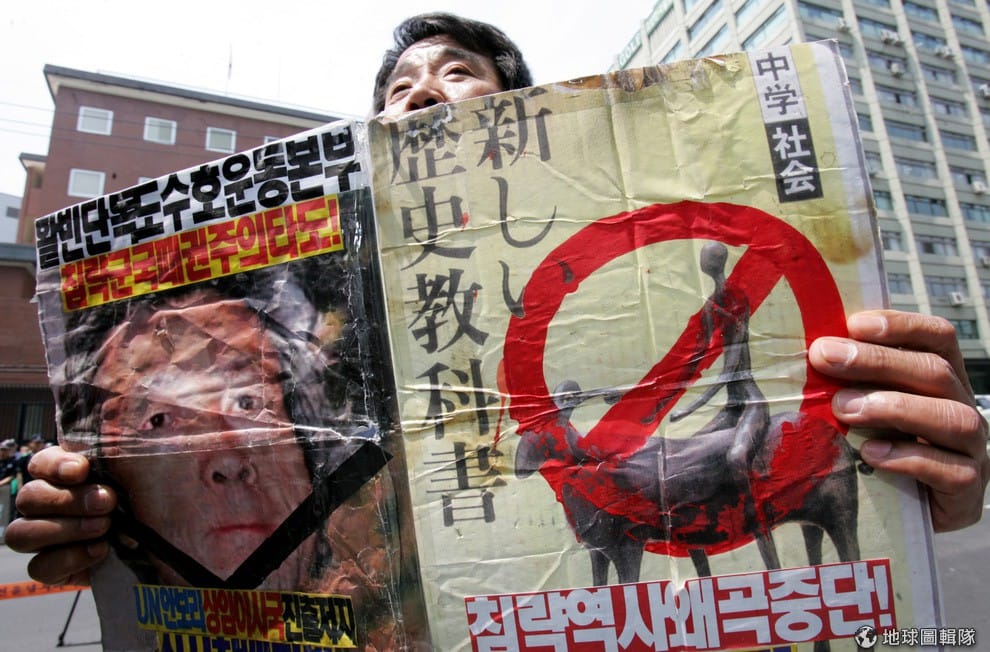 2005年,南韓出現抗議日本歷史教課書內容的民眾。