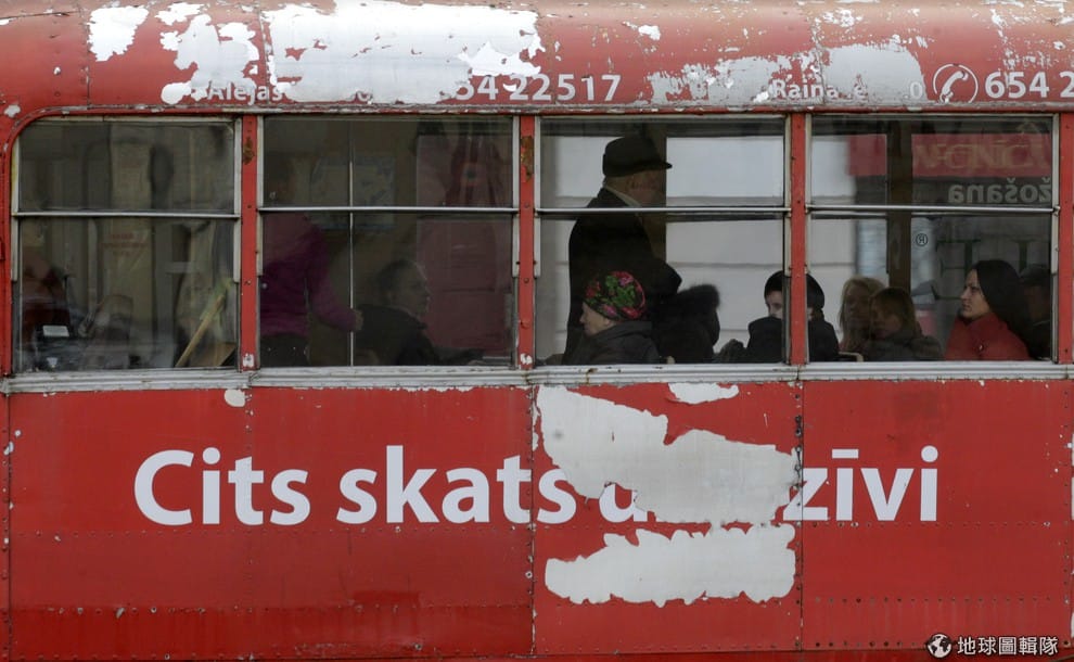 拉脫維亞的第二大城陶格夫匹爾斯(Daugavpils)市區,可見人們搭著寫有「對生命另種看法」標語的車輛。自從烏克蘭所屬的克里米亞自治共和國決定脫離烏克蘭,轉投向俄國懷抱後,這起事件也開始在前蘇聯政體下的各國發酵。