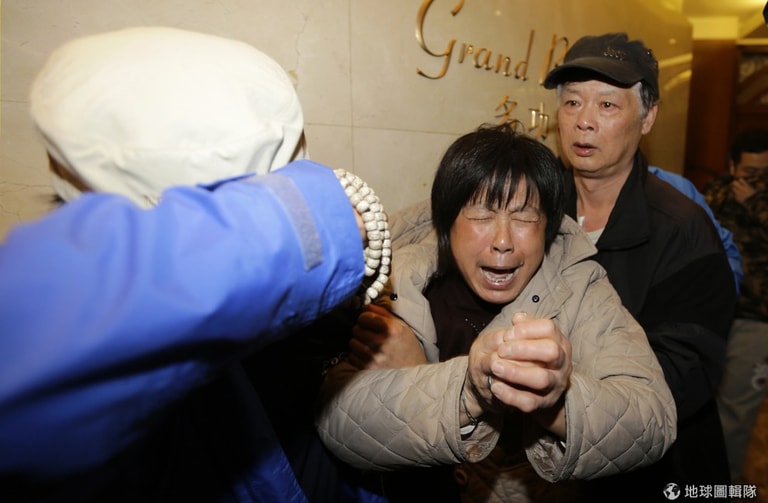 照片中的家屬聽到墜機消息後,忍不住失聲痛哭。24號晚間,馬來西亞首相宣布失蹤多時的馬航MH370班機墜毀在南印度洋一帶,機上239名乘客和機組員全數罹難。