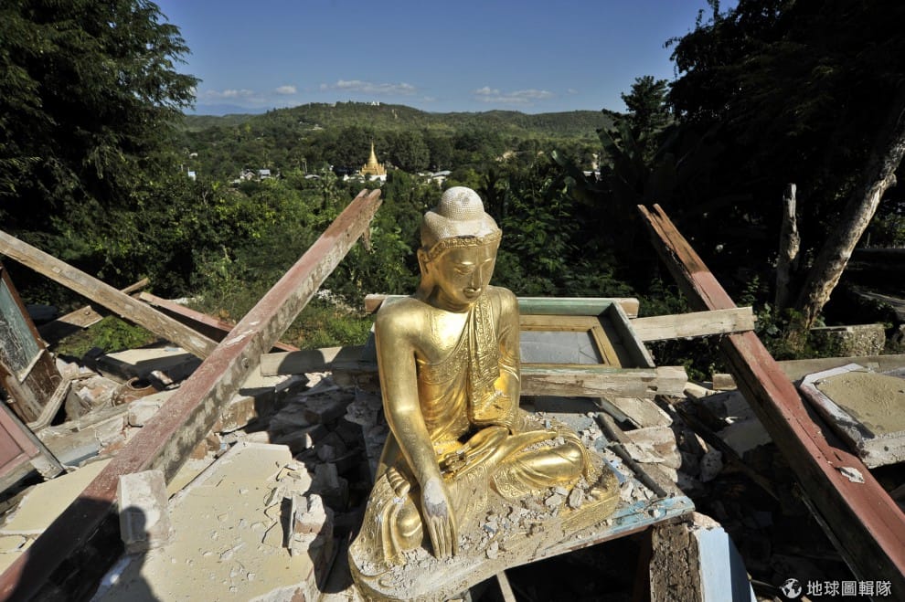 曼德勒省一處佛寺,淺層地震讓當地許多房舍嚴重倒塌。圖片來源:Kaung Htet/Getty Images