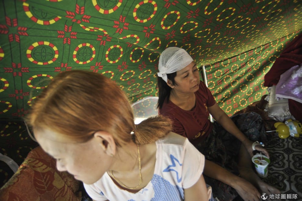 在地震中受傷的傷患也只能在臨時找到的救難中心休息,沒有可以供醫療的醫院可去。圖片來源:Kaung Htet/Getty Images